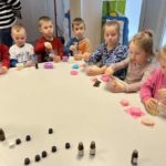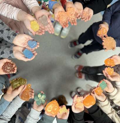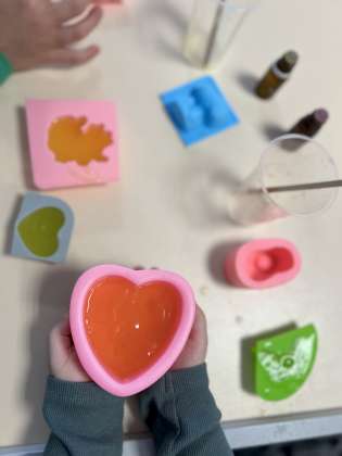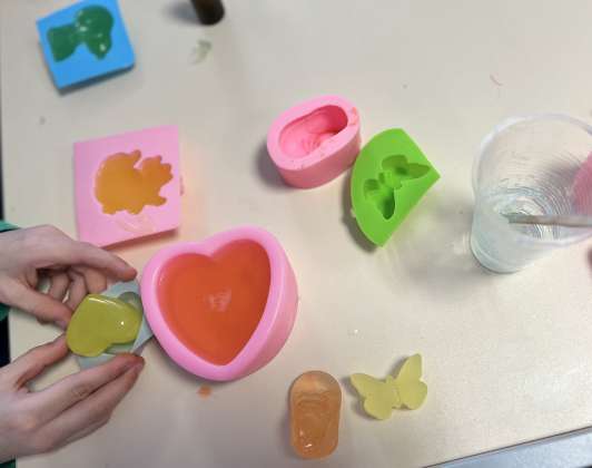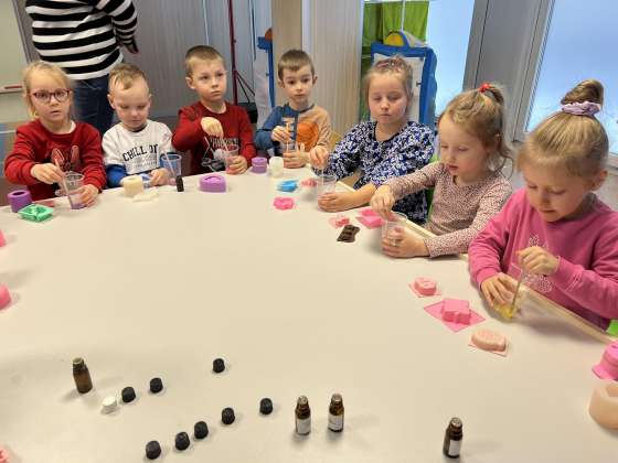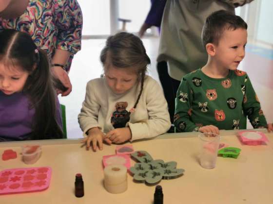 Vasario 6 d. Kodėlčiukai Pavilnionių skyriuje ne tik kūrybiškai maišė ir derino spalvas, bet kaip tikri muilo ekspertai kūrė savo muiliukus. Visa kūrybinė erdvė kvepėjo įvairiais skoniais, kadangi savo muiliuką gardino eteriniais kvapniaisiais aliejais. Vaikai pasigamino švelnius, mėgstamų spalvų, bei įdomios formos muiliukus, kuriuos išbandys namuose ir išmuilins visą šeimą.