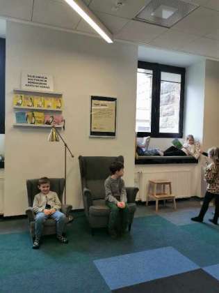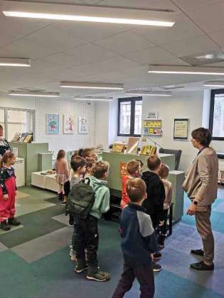 Pelėdžiukai su grupės mokytojomis pirmą kartą vyko į nacionainę Martyno Mažvydo biblioteką visuomeniniu transportu. Pasirodo daug kam ir tai buvo pirmas kartas. Vaikai smalsavo, uždavinėjo klausimus. Bibliotekos gidė vedė mažuosius per kelis bibiotekos aukštus, vaikai suprato kokio dydžio yra bibeteka. Išgirdo apie tai, kaip tapti skaitytoju, kad biblioteka turi savo ” spec. knygų ligoninę”. Atvykę į vaikų ir jaunimo skyrių vaikai panoro tapti bibliotekos skaitytojais.